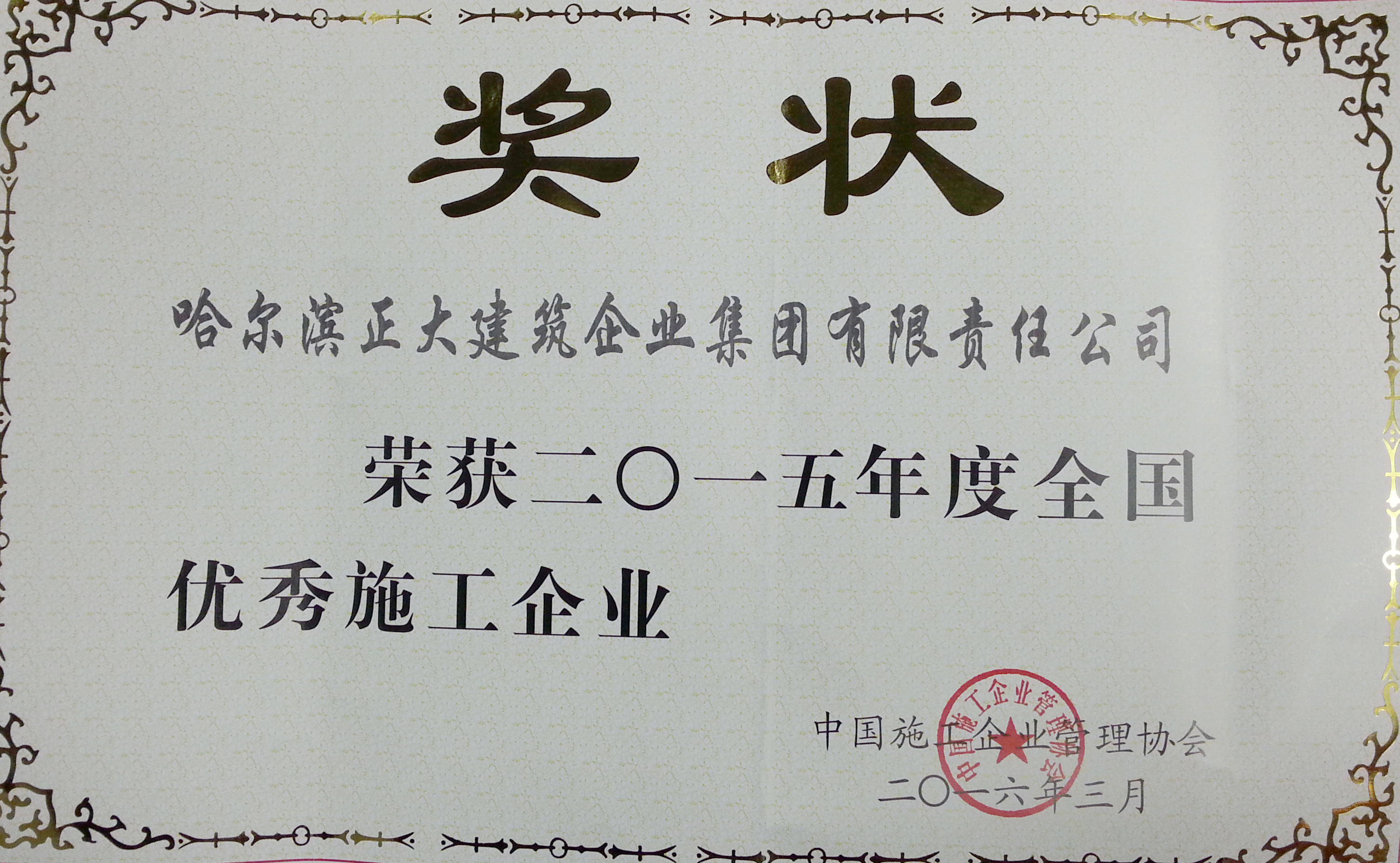 公司成立至今,先后被評(píng)為全國(guó)優(yōu)秀施工企業(yè)、全國(guó)用戶滿意施工企業(yè),全國(guó)首批建筑業(yè)誠(chéng)信施工企業(yè),全國(guó)“安康杯”競(jìng)賽優(yōu)勝企業(yè),全國(guó)工程建設(shè)質(zhì)量管理優(yōu)秀企業(yè)、中國(guó)建設(shè)系統(tǒng)企業(yè)信用信譽(yù)AAA級(jí)單位,并多次榮獲省、市“先進(jìn)單位”、“優(yōu)秀單位”、“重合同守信用單位”、“黑龍江省優(yōu)秀施工企業(yè)”、“黑龍江省用戶滿意施工企業(yè)”等光榮稱號(hào)。并連續(xù)獲得哈爾濱市質(zhì)量管理先進(jìn)單位、黑龍江省質(zhì)量管理先進(jìn)企業(yè)、黑龍江省質(zhì)量管理獎(jiǎng)、黑龍江省“安康杯”優(yōu)勝企業(yè)等榮譽(yù)。并在建筑施工現(xiàn)場(chǎng)環(huán)保管理上創(chuàng)造了一項(xiàng)“中國(guó)企業(yè)新記錄”。